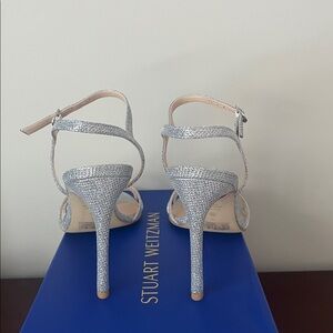 Stuart Weitzman Sparkling Silver crystals Strappy Heels like NEW