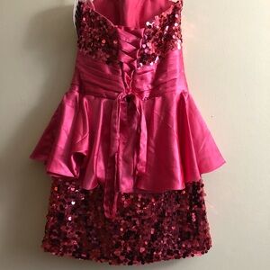 Chic pink dress with sparkling sequins. Perfect for a glamorous look.