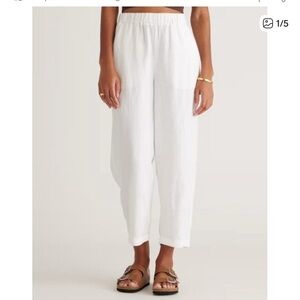 Quince 100% European Linen Pants White Sz X-Large Elastic Waist Relaxed Fit