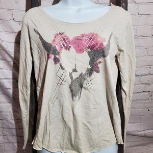 Small Long Sleeve Top - Bull Skull with Flowers - Country