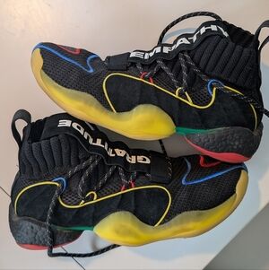 Pharrell Williams x Adidas Crazy BYW Lvl X "Gratitude + Empathy" sneakers, men's size 9. Released in December 2018 as a collaboration between Adidas and artist Pharrell Williams.