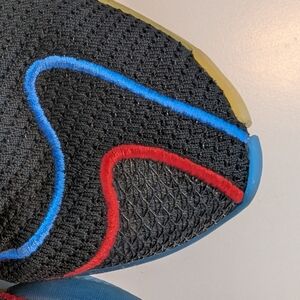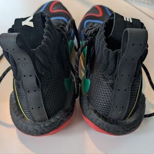 Colorway: The shoes feature a core black base with vibrant yellow, blue, red, and green accents across the upper and translucent rubber sole unit.