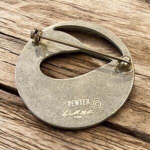 Signed Vintage Pewter Loon Pin approximately 1” diameter EUC