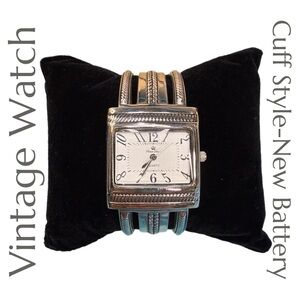 Premier Designs, vintage watch, quartz movement, cuff watch, silver tone, retro style, boho accessories, statement timepiece, artisan watch, 90s fashion, new battery, giftable