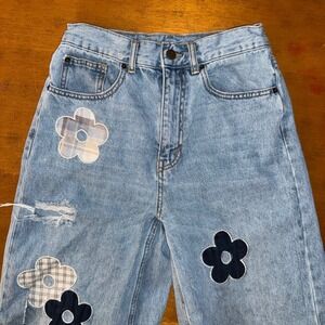 Features: Distressed, Ripped, Flower Patches, High-Waisted, Pockets