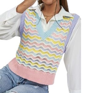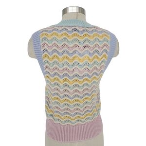 Zara Sweater Vest Pastel Scalloped Chevron Sleeveless V Neck Knit Medium