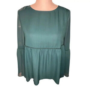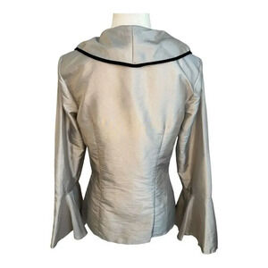 NEW WD.NY Size 4 Silver Shiny Ruffle Neck Button Front Bell Sleeve Top NWT