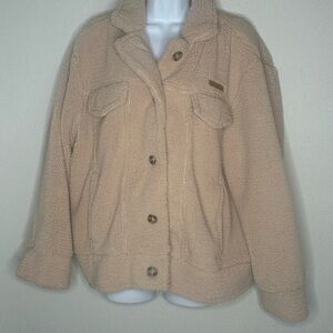Soft and warm teddy jacket. Features button closure and chest pockets. Ideal for chilly days.
