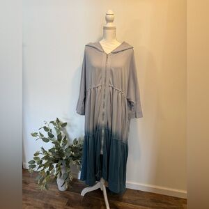 Blue top and skirt set. Sized 3X but fits more like a XL-2X. Pencil skirt has a surged seam on the front (as pictured). Waist of skirt is elastic. Top has a collar detail with a keyhole opening in the back. Sleeves are 3/4 length, elastic hem.