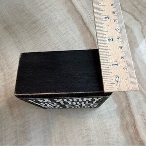 Humorous black and white decorative sign with bold text.
