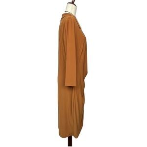 Anne Klein Wrap 3/4 Sleeve V Neck w/ Collar Dress. Mustard. Size 16. #562 NWT