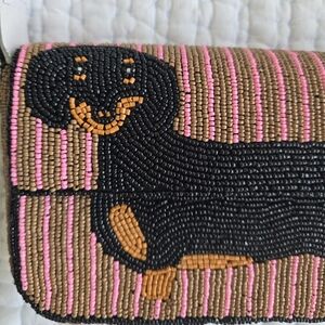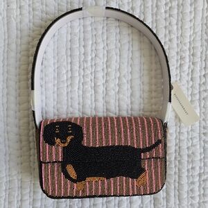Brand new with tags Anthropologie Fiona Beaded bag with a beaded dachshound.