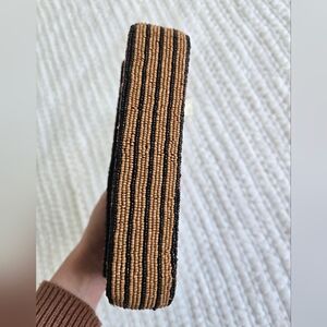 Fully covered glass bead shoulder bag; cotton lining.