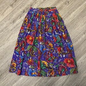 Vintage Avon Fashions Purple Tropical Floral Fish Midi Skirt Eclectic Resort 11/12