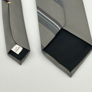 Oscar de la Renta Mens Grey Striped Polyester Necktie