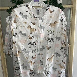 Charming pajama set with farm animal designs. Soft and cozy for a restful sleep.