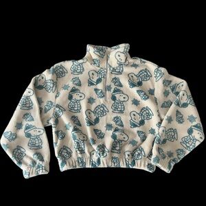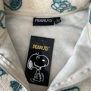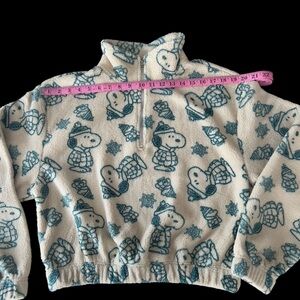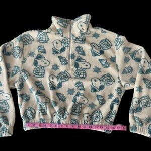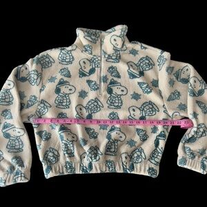 Peanuts Cropped Quarter Zip Plush Fleece Pullover w/Snoopy Print size Large NWT