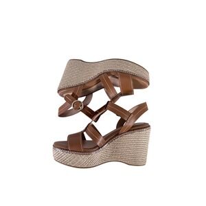 Womens Cole Haan Cloud All Day Wedge Honey Brown Leather Size 7.5 M 4 inch heel