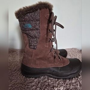 The North Face Brown Winter Boots with Fur Trim and Rubber Sole
