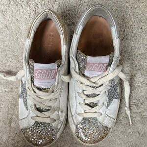 Golden Goose White and Silver Glitter Star Sneakers