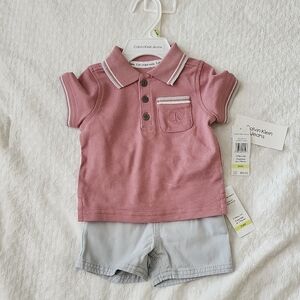 Chic Calvin Klein polo for kids. Dusty rose color with classic collar. Perfect for casual outings.