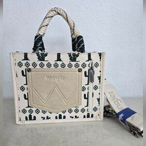 Wrangler NWT Southwestern Print Rope Handle Tote Bag In Cream & Green Cactus