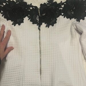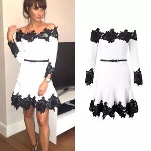 Comino Couture black and white off shoulder dress black crochet size 12 NWT