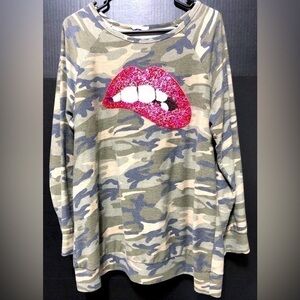 🪽Chic Soul Camouflage Sequin Mouth Lips Shirt