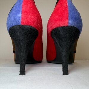 Vintage 80s VAN ELI Colorblock Suede Leather Pumps Heels 6-6.5