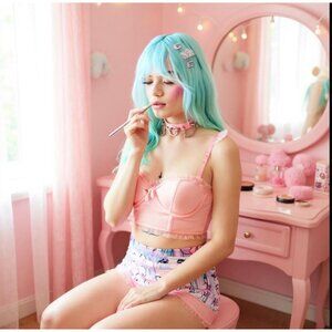 Sugar Thrillz ✦ Luv Me Tender Satin Ruffled Bra Top ✦ Pink Molded Cup Crop S & L