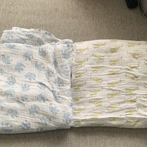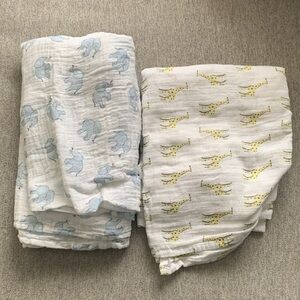 Set of 2 swaddles Adorable Blue and Yellow Animal Print Kids baby Blankets