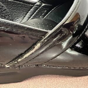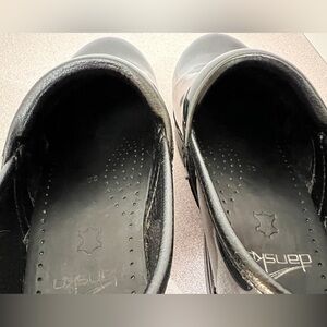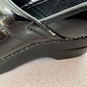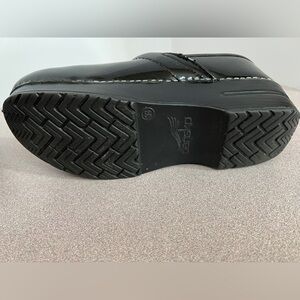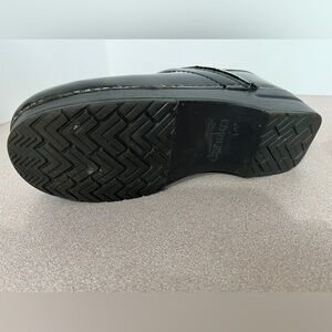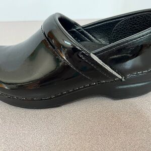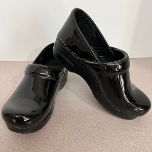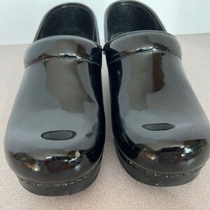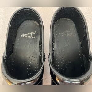 Pre-worn Dansko Women’s Professional Clogs. These are black patent leather with intact soles. Size 38. If this is your first pair of Danskos, familiarize yourself with how these clogs are meant to fit. Please note some removal of the leather on each side of the clogs. There’s still much life in these beauties. Visit the Dansko website for additional information.