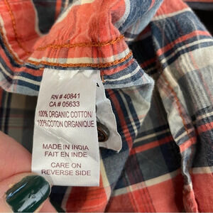 Ecoths men’s orange plaid button up shirt short sleeve