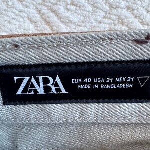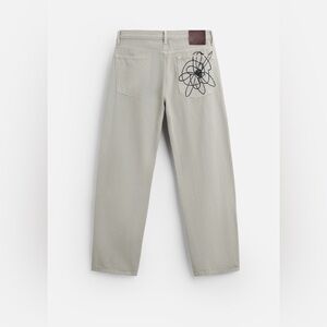 NWOT Zara Men's Beige Jeans with Black Abstract Design Sz 31