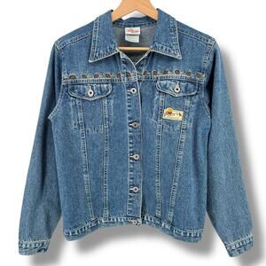 Vtg 90s Disney Store Winnie the Pooh Friends Knotty Pine Trail Denim Jacket Sz S