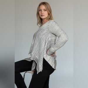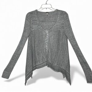 Free People Never Again Ribbed Cardigan Gray Asym Hem Small