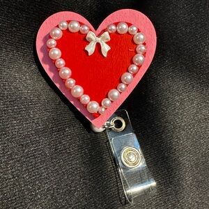 NWT Valentine’s Day Badge Reel Retractable Handcrafted Wooden Hearts & Pearls