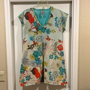 Johnny Was Multicolor Floral V-Neck Dress size S great as bathing suit cover