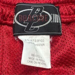 Vintage Barcode Shorts Mens XL Red Mesh New York Patch Basketball Russia Baggy