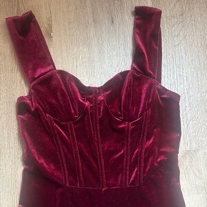 Step out in style with this elegant velvet jumpsuit. The rich red color adds a touch of sophistication to any occasion. Perfect for evening events or a night out.