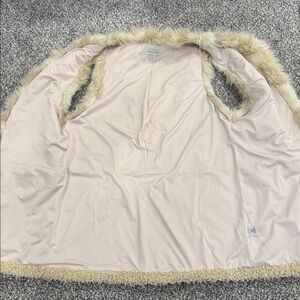 Chic faux fur and Sherpa vest by Hinge. OSFM. Soft cream tone. Ideal for layering. Single hook and loop closure. Stunning, contemporary, maximalist. Excellent condition.