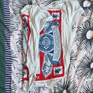 Super unique classic Budweiser logo on a romper-style fit. Would be great for a tailgate.