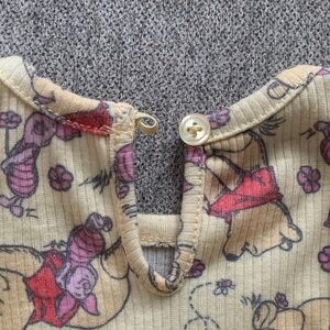 Adorable baby romper with a yellow tutu and matching headband. Features playful prints with Winnie the Pooh and piglet. Size 6-9 months. Great used condition