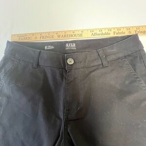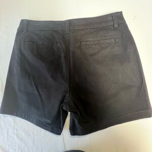 A.N.A. TWILL SHORTS. BLACK SIZE 6 9” RISE. TWO FRONT SLANT POCKETS