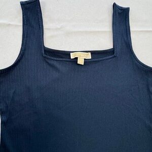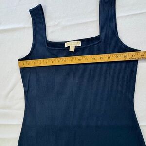 Michael Kors sleeveless midi ribbed slip dress in navy. Size Large.