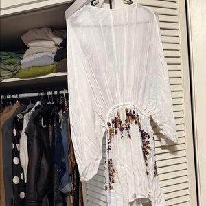 Free People White Floral Embroidered Kimono