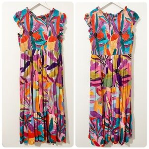 Briton Court Colorful Floral Midi Dress Size Medium M