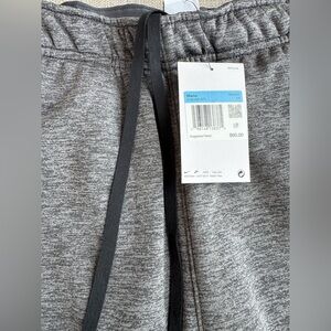 Nike Therma-FIT standard fit jogger, heathered gray, NWT, elastic waist with ties, two side inseam pockets, right side zippered pocket, fleece lined interior, Nike logo on left front thigh. Nike‘s Therma-FIT technology keeps you warm and comfortable. Made of 100% polyester. Approximate measurements lying flat: waist 15”, rise 11”, inseam 29”, jogger hem width 5”. Smoke-free home. Thank you for looking.