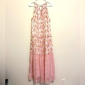 Drew for Anthropologie Pink Floral Tiered Maxi Dress | Size L