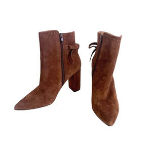 Chelsea & Violet Brown Miley Suede Studded Back-Tie Block Heel Booties Size 8
